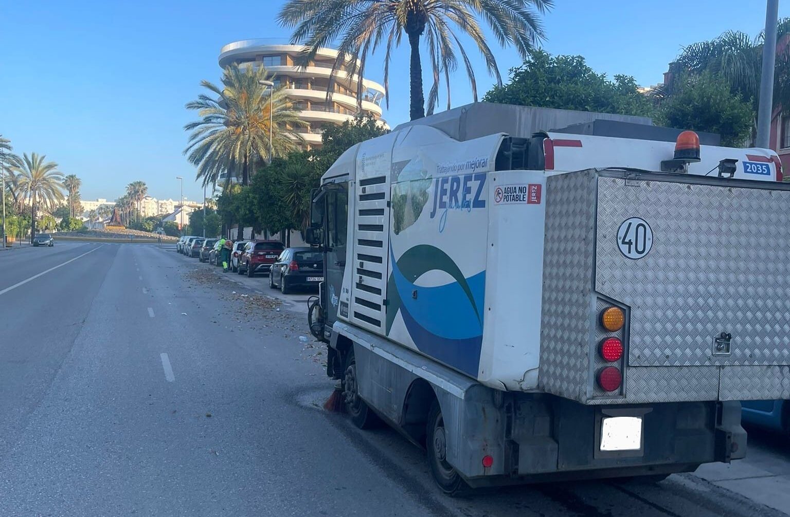 Empleados de la limpieza viaria, trabajando en Avenida de Andalucía.